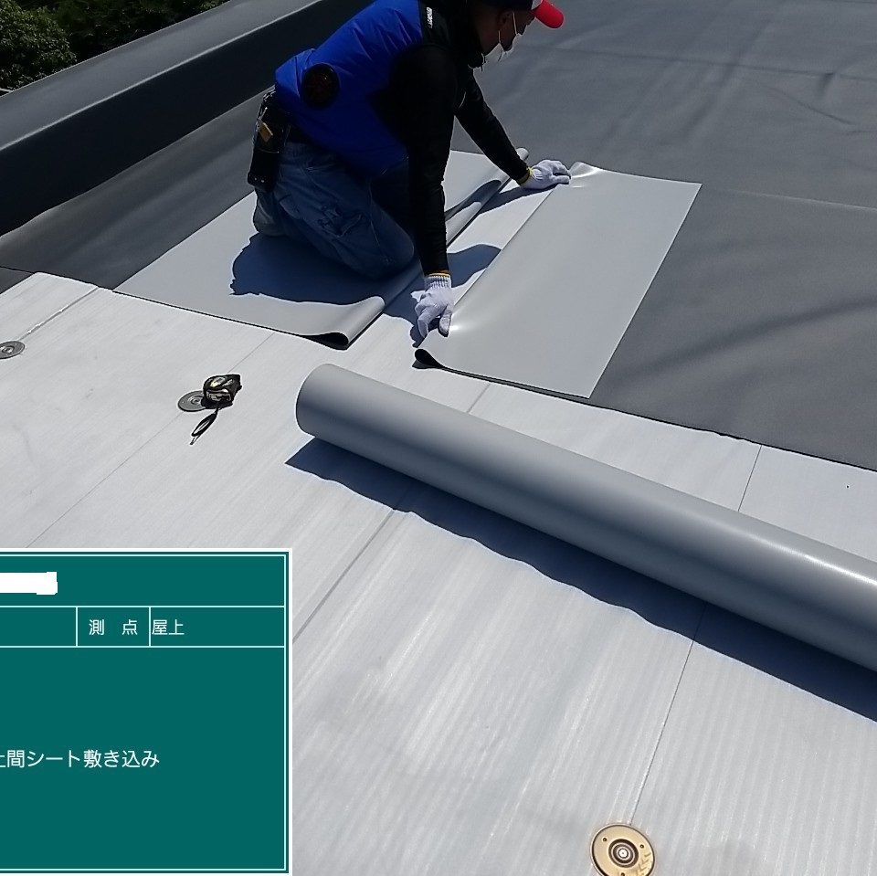 塩ビシート防水は、塩化ビニル樹脂を原料とした1.5ミリほどのシートを接着剤や塩ビ鋼板などで固定し、貼り付ける防水工法です。